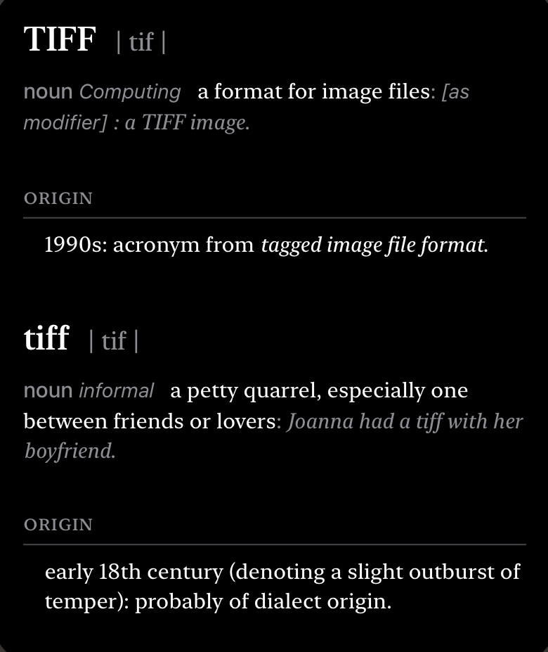 “Tiff” A petty quarrel. Usually small. Often between people who care about each other.