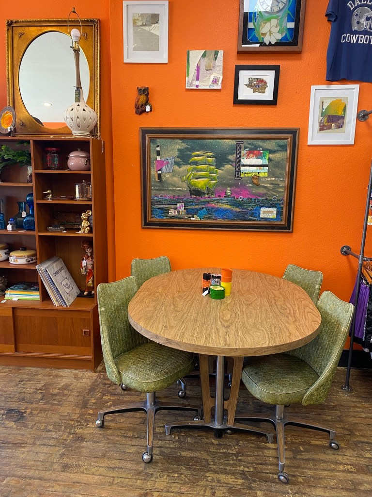 In between the public theater, I hung a few of my pieces at the vintage shop down the street (small joy), tried on clothes I couldn’t afford (small fantasy), and painted until I was done painting. The mural is so close to becoming a finished thing. The walls are full of color, the vibe is increasingly (intentionally) wierd, and I’m almost certain the shop regulars are catching on.